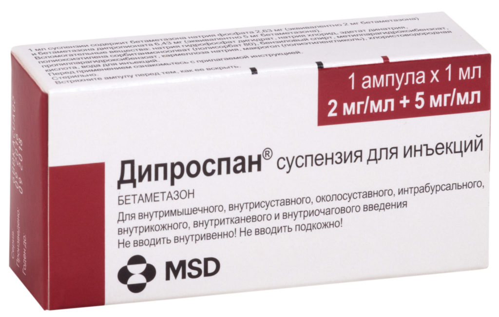 L'agent peut être injecté dans un muscle ou une articulation, au cours de la prise de 3 injections. A une large gamme d'applications. Élimine rapidement le foyer de l'inflammation et conduit à la récupération. Parmi les contre-indications : une glycémie élevée et une forme ouverte de tuberculose. Coût : 746 roubles.