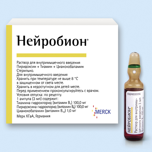 Un remède à action rapide pour les douleurs lombaires, soulage la douleur et la tension dans les muscles et les articulations, et est utilisé dans le traitement de l'arthrite et de l'arthrose. Ces médicaments sont vendus uniquement sur ordonnance. Pour maintenir le cours du traitement, après l'utilisation d'injections, il est recommandé de prendre des comprimés Neurobion. Coût moyen : 345 roubles.