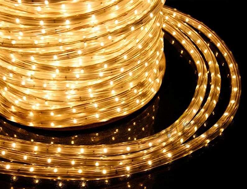 La guirlande a la forme d'un cordon transparent dans lequel se trouvent des LED ou des lampes à incandescence. Récemment, ces guirlandes du Nouvel An sont devenues très populaires.