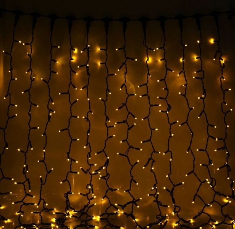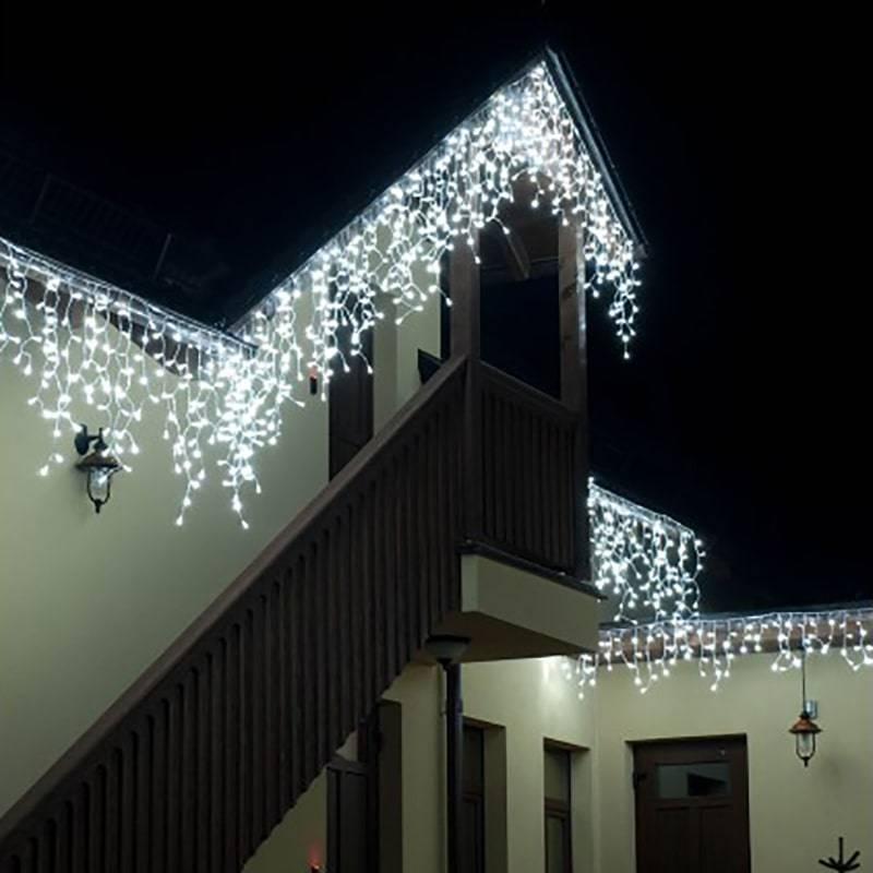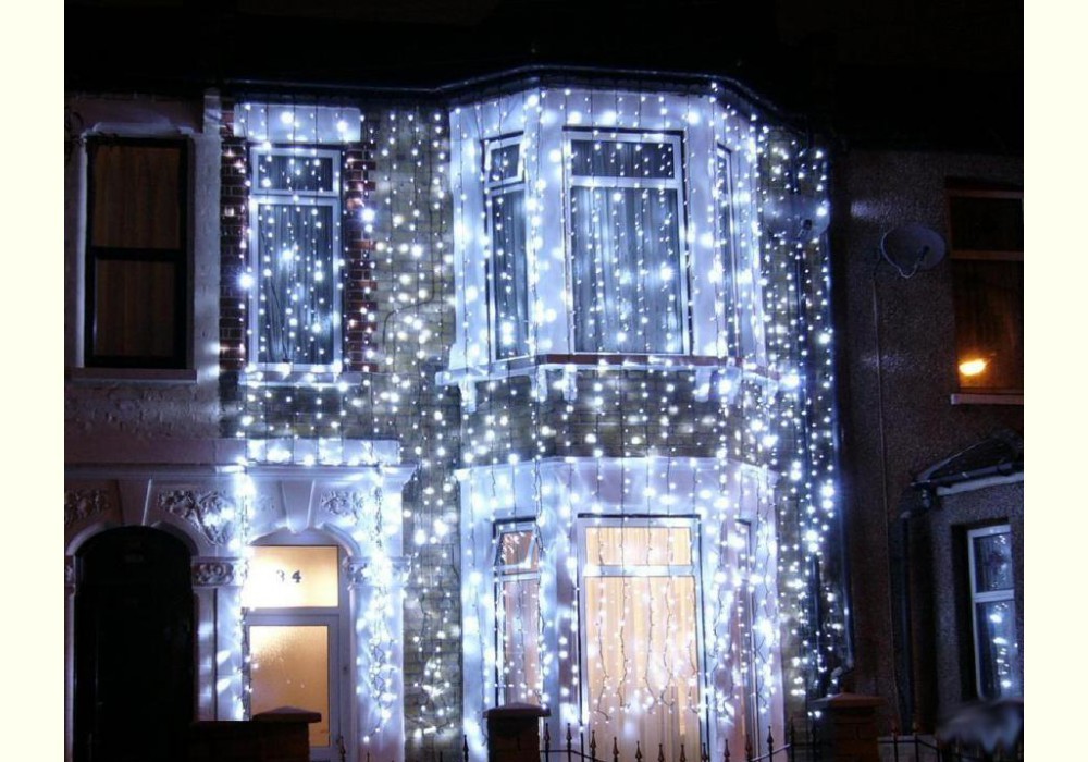 Ce modèle de guirlande peut être utilisé pour l'enregistrement de fenêtres, enseignes, corniches. Il ressemble à une frange et brille d'une lumière blanche. Avec cette option, vous pouvez rendre presque n'importe quel bâtiment festif. Convient pour une utilisation en extérieur et en intérieur.