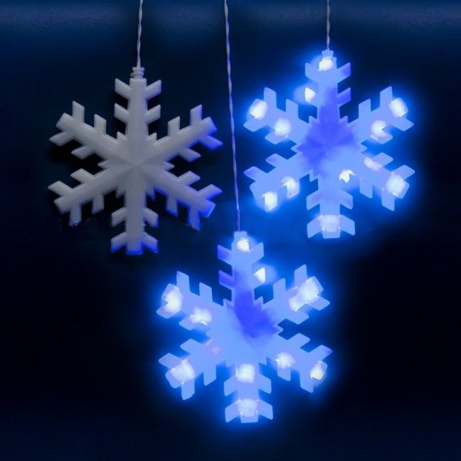 Ce modèle sera une solution idéale pour ceux qui utilisent des guirlandes inhabituelles pour décorer leur maison. Le modèle ressemble à une frange. Cependant, au lieu des segments habituels avec des ampoules, des flocons de neige sont utilisés. Chaque flocon de neige est surligné en bleu. Une telle option inhabituelle deviendra une véritable décoration, à la fois pour un immeuble résidentiel et une vitrine. La longueur de la frange est de 270 cm, largeur 30 cm La guirlande est équipée de LED de haute qualité et d'une protection contre l'humidité. Le produit peut être utilisé pour la décoration de la façade et comme décoration pour l'épicéa.