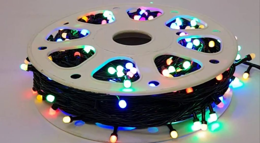 Idéal pour une grande maison. La guirlande est placée sur une bobine, ce qui non seulement facilite le processus d'installation, mais préserve également le produit pendant la période de non-utilisation. Cette option convient aux utilisateurs qui souhaitent utiliser la version classique de la décoration intérieure. À l'aide d'un fil, vous pouvez mettre en évidence des détails individuels sur la maison ou créer une composition du Nouvel An.