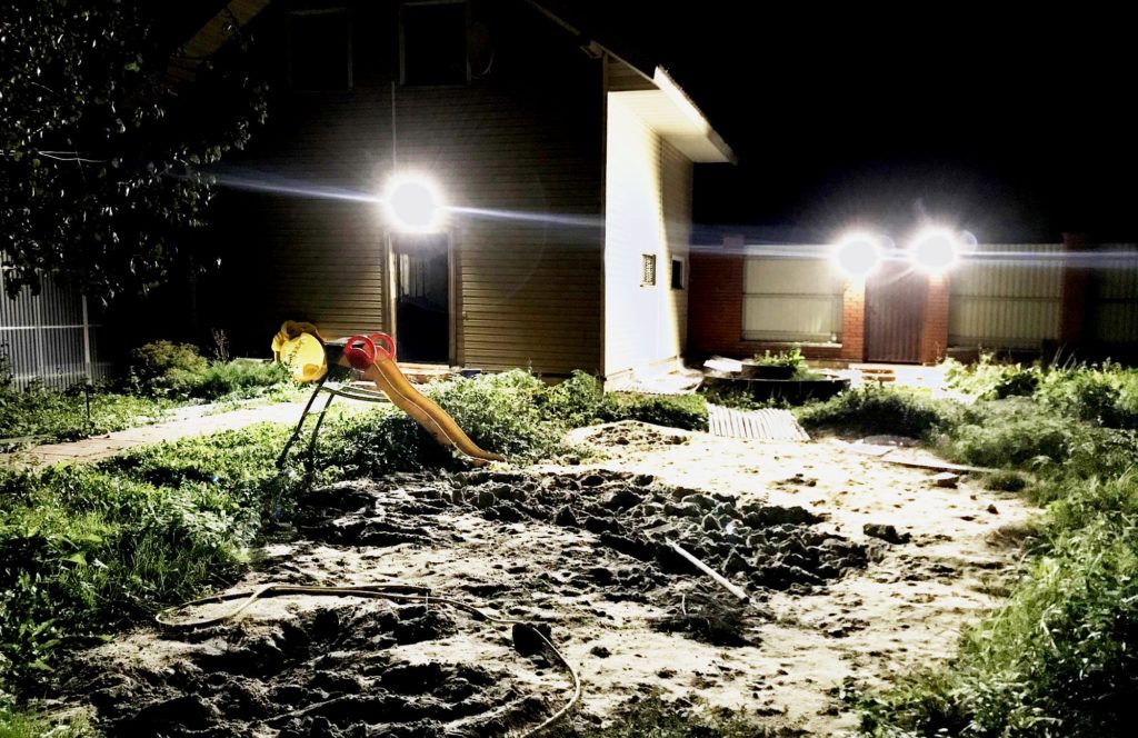 Une ampoule de 500 watts a été installée.Pour le protéger, des barres d'acier sont fournies, qui protégeront également l'élément des dommages mécaniques accidentels. Le boîtier étanche est marqué IP-54, de sorte que le projecteur n'a pas peur de la pluie. Le poids de l'appareil est de 1,5 kg. Durée de vie de l'ampoule supérieure à 50 000 heures.
