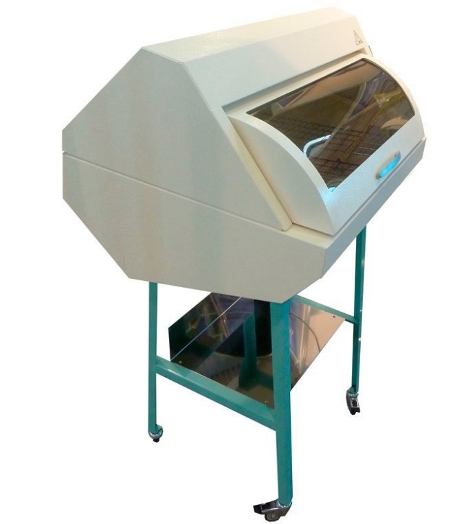 La chambre ultraviolette empêche la contamination secondaire des appareils par des micro-organismes. La conception se compose de supports, d'une porte vitrée qui ne laisse pas passer les rayons UV, de commandes, de dispositifs pour stocker le contenu de la boîte et d'une lampe germicide qui a une longue durée de vie et une capacité de travail instantanée.