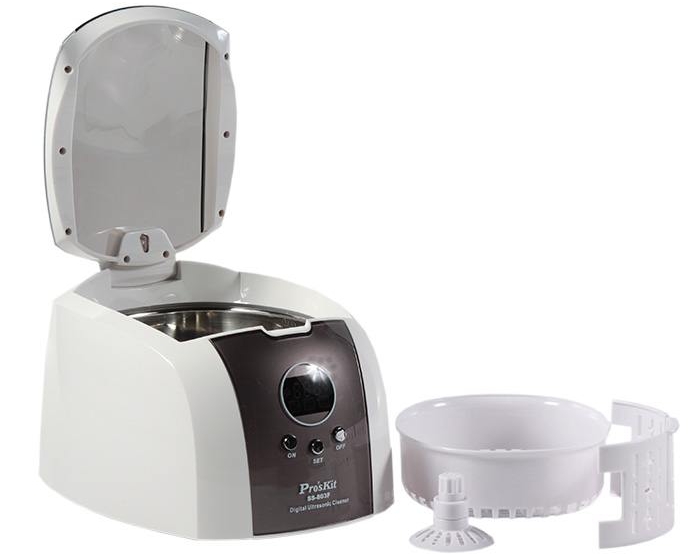Le produit est destiné au nettoyage en profondeur des pièces de l'huile et d'autres types de contaminants. Très souvent, ces appareils sont utilisés dans les établissements médicaux et les salons de manucure. Le conteneur de pièces a une taille de 0,700 l. Peut être utilisé pour nettoyer les bijoux et les pièces de montre. La puissance de l'appareil est de 50 watts. L'utilisateur peut configurer 5 modes de nettoyage, en fonction du type de matériau à partir duquel l'article est fabriqué. La salle de bain est livrée avec un support spécial pour les petites pièces.