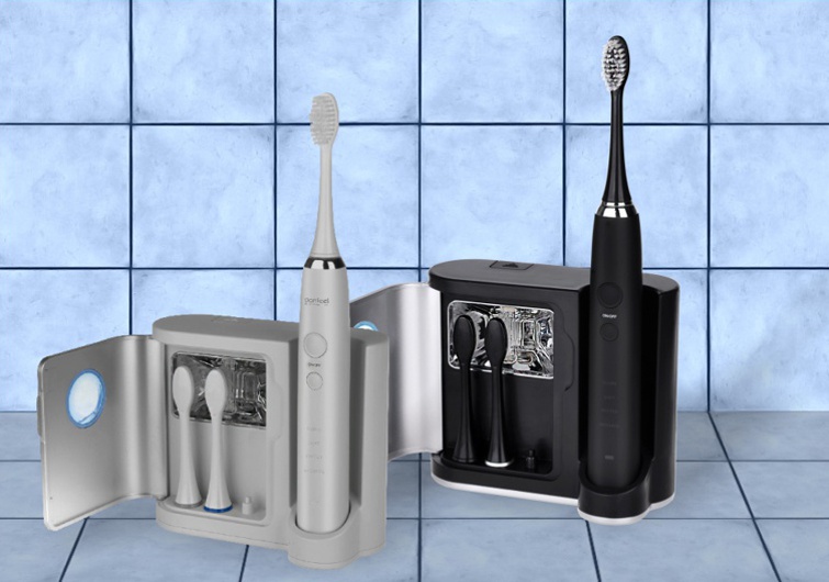 Le modèle se distingue des autres par la présence d'un désinfecteur qui nettoie l'appareil de toutes les bactéries et microbes. Après avoir placé l'appareil dans un désinfecteur à ultrasons après utilisation, l'utilisateur peut réutiliser un appareil parfaitement propre en quelques minutes.