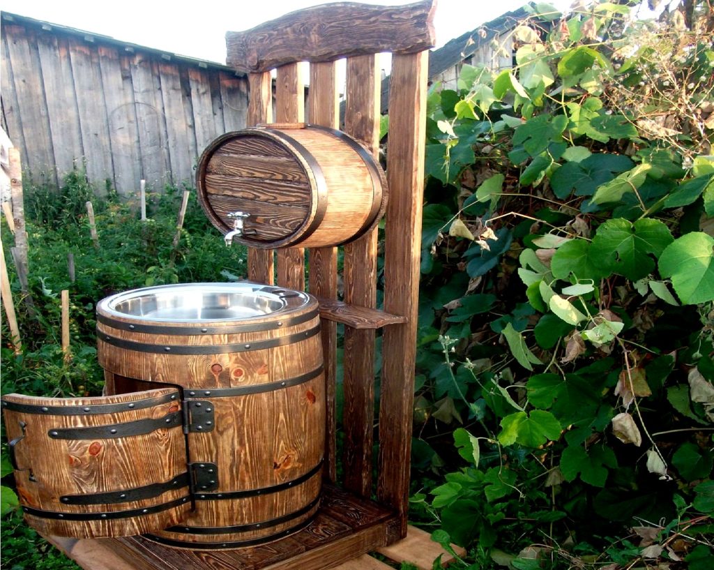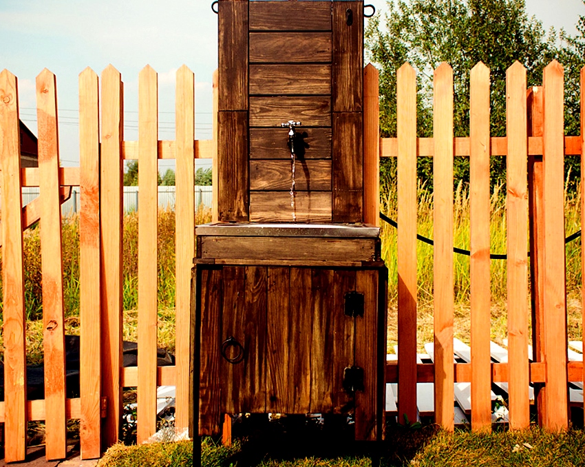 Une excellente solution pour se laver les mains après des heures passées dans le jardin. Les dispositifs de suspension peuvent être installés n'importe où sur le site. La conception est une crémaillère en métal, dont la fixation est réalisée au sol et le réservoir, qui est monté sur le dessus. Un volume de 10 à 15 litres suffit pour résoudre les problèmes quotidiens. Le récipient de vidange peut être omis, car l'eau sale s'infiltrera dans le sol. Lors du choix d'un site, la préférence doit être donnée à une zone éloignée où une humidité excessive ne nuira ni aux cultures ni aux bâtiments. Les produits des meilleurs fabricants du monde vous permettent d'acheter un évier de haute qualité avec toutes les caractéristiques nécessaires.