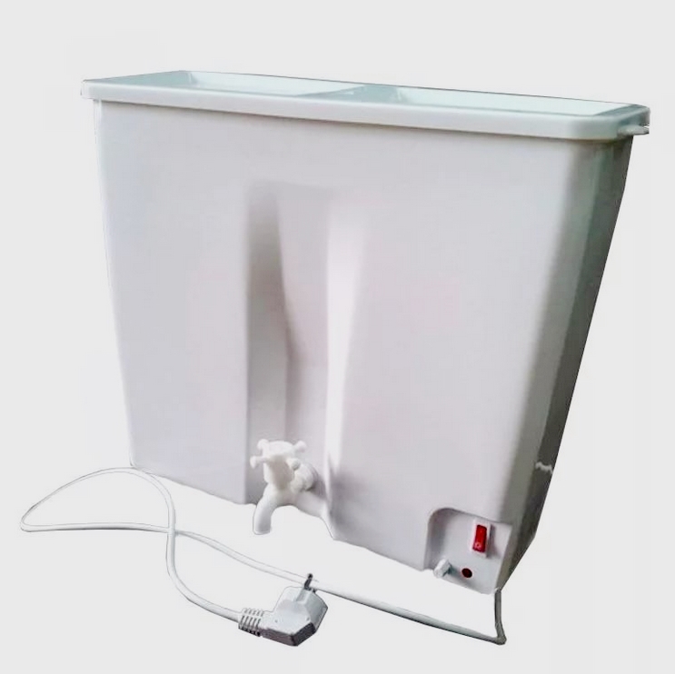 Réservoir d'un volume de 30 litres. La conception du type à charnière, qui est sa caractéristique. Fabriqué en acier inoxydable, le robinet est à l'avant. Le modèle est équipé d'un entraînement électrique. Un type avancé de lavabo, cependant, un drain n'est pas fourni. Pour l'eau sale, vous devrez fabriquer un récipient séparé. L'appareil n'est pas destiné à être utilisé à l'extérieur car les composants électriques ne sont pas résistants aux intempéries. Ceci est lourd d'un court-circuit. La connexion est établie au réseau domestique avec une sortie 220 V. Le chauffage est effectué rapidement (en une demi-heure).Il existe plusieurs modes de chauffage, le mode de température est donc sélectionné manuellement.