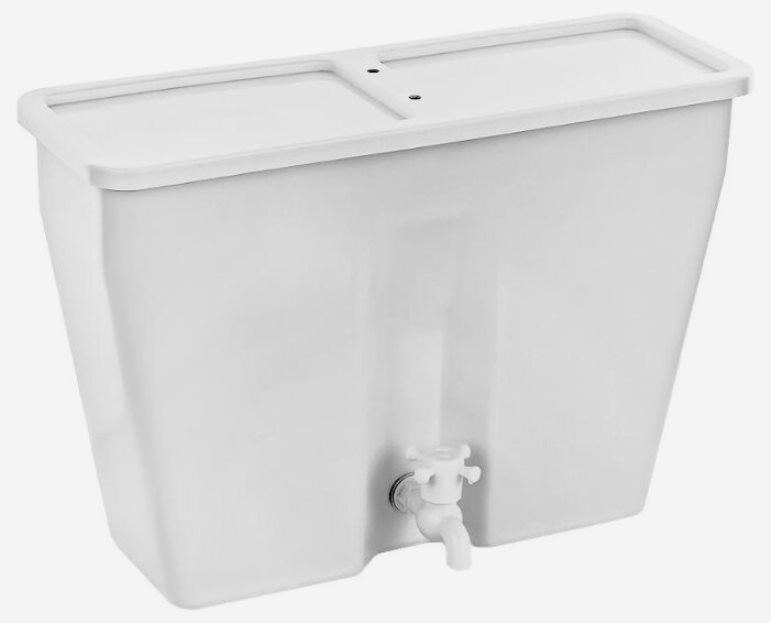 Le réservoir est conçu pour 20 litres et pour plus de commodité est équipé d'une poignée située sur le dessus. Il sera nécessaire pour remplir le récipient.Il y a un joint caoutchouté autour du périmètre, de sorte que la conception est considérée comme scellée. Même avec un chauffage important, l'eau ne s'évapore pas. Un robinet à tournant sphérique équipé d'un levier est utilisé pour le lavage des mains. A proximité immédiate de celui-ci se trouve un relais thermique, qui est responsable du chauffage uniforme du liquide. Fabriqué en acier inoxydable et chauffe l'eau jusqu'à 60°C en 1 heure. Le kit pèse 6,5 kg, donc 1 personne peut facilement gérer l'installation. Le réservoir en acier a un revêtement protecteur à base de polymères. La surface est soignée et attrayante.
