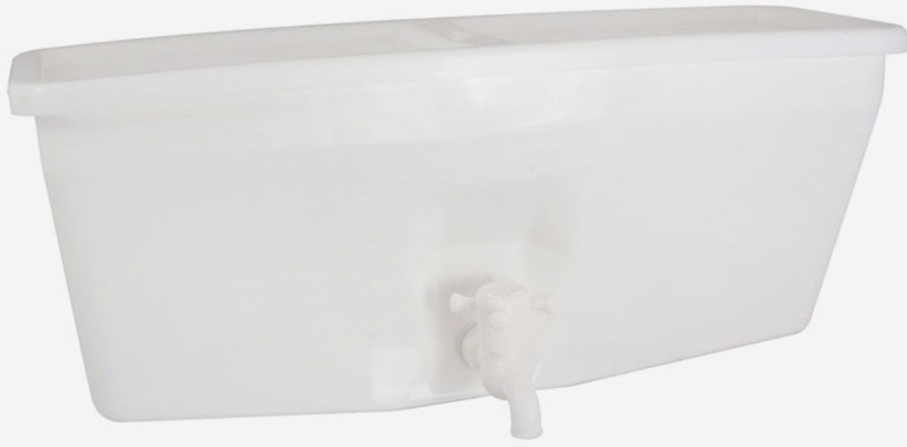 De tels dispositifs sont montés sur des surfaces verticales. Un réservoir d'eau est installé près d'eux. Convient pour une installation n'importe où. Les pinces sont utilisées comme attaches. Le volume de ces lavabos dépasse rarement la barre des 5 litres. C'est cette option qu'il faut acheter pour un chalet d'été, qui est rarement visité.