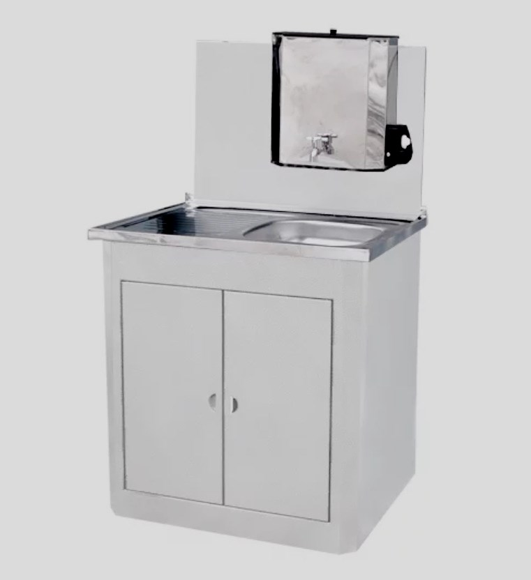 Cette option est considérée comme la plus populaire. Populairement appelé "Moydodyr". L'eau usée s'écoule dans un réservoir spécial, qui est placé à l'intérieur de l'armoire. Il est possible de connecter un système de drainage complet. Souvent, les modèles populaires sont équipés non seulement de tables de chevet, mais également de miroirs, de crochets à serviettes et d'étagères.Les éviers sont en acier (métal) ou en plastique.