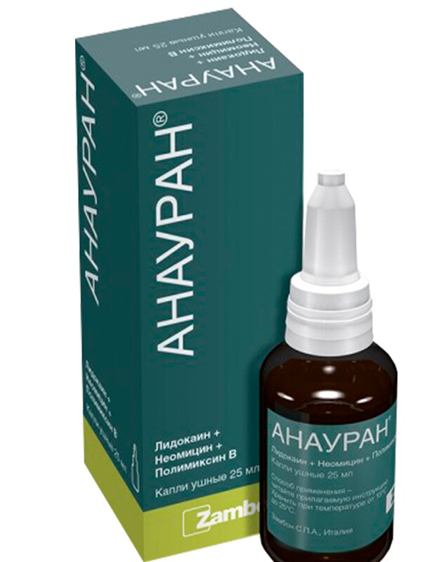 Producteur - Zambon S.P.A. (Italie). Flacon compte-gouttes en verre, couleur foncée. Contient 2 antibiotiques (polymyxine B, néomycine), anesthésique local (lidocaïne). Attribuer au traitement :