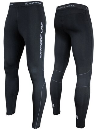 Ils se distinguent par un look moulant, des rayures bleues verticales sur le haut des cuisses et un fond noir uni. Tissu - lycra avec une toison polaire interne.