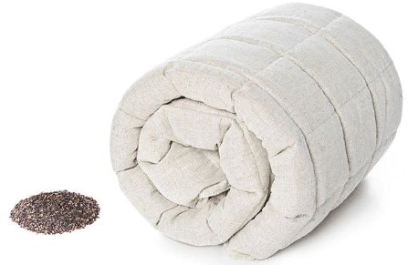 Une couverture faite maison peut être de n'importe quelle forme et taille. Il peut être utilisé à la fois indépendamment et en plus du principal. La charge peut également être différente, des billes de polypropylène aux cosses de sarrasin. Prenez le matériel à portée de main ou vous pouvez commander le type d'intérêt sur Internet.