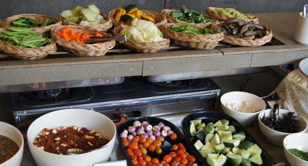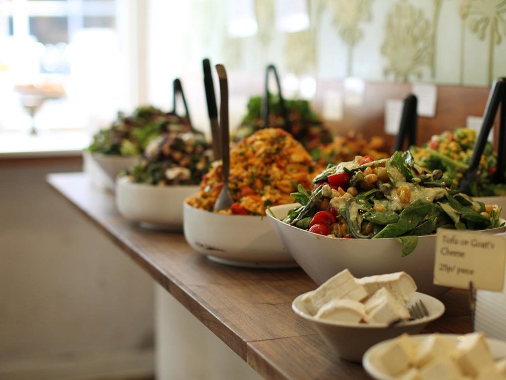 En plus des plats habituels pour les végétariens stricts, les établissements peuvent présenter des plats à base de produits végétaux de toutes les cuisines du monde. Dans le même temps, pour la commodité des clients, le menu peut être divisé en trois sections : végétalien, végétarien et cru.