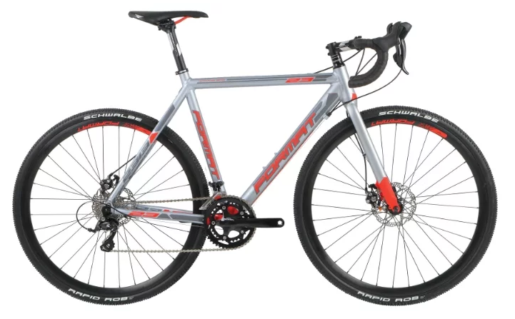 Vélo de cyclocross, matériau de la selle - alliage chrome-molybdène, guidon - type route, fourche rigide. Le cadre en aluminium est équipé d'un entraînement par chaîne. Il y a une 2ème jante.