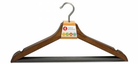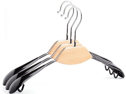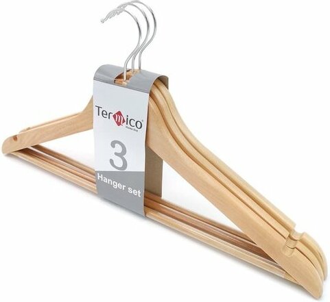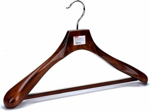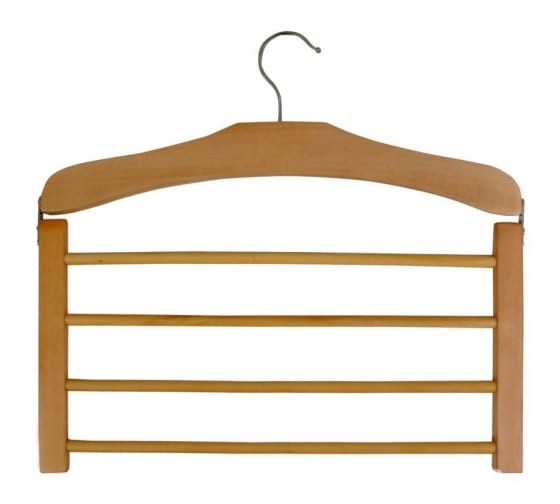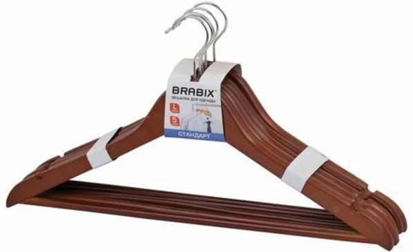 Le modèle est en bois naturel, recouvert d'un vernis spécial hydrofuge. Ne vous pliez pas sous beaucoup de choses. Largeur : 45 cm Comprend 5 pièces. Il y a des évidements pour attacher des jupes et des pantalons. Vous pouvez acheter des cintres chez Leroy Merlin, Ozon ou Wildberry, ainsi que commander en ligne auprès du fabricant. Prix : 572 roubles.