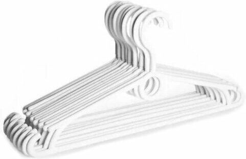 Cintres blancs, taille standard, 15 pcs. Convient aux adultes et aux enfants. Le modèle a une résistance et une épaisseur élevées, ce qui vous permet de ranger les vêtements d'extérieur sans craindre sa déformation. Des évidements supplémentaires conviennent aux gros objets légers. Dimensions : 19x41 cm Prix moyen : 490 roubles.