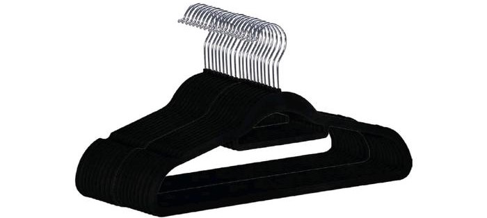 Cintres noirs pour le rangement et la disposition compacte des objets dans le placard. Le revêtement en velours antidérapant distingue favorablement le modèle des concurrents. Il y a une barre transversale supplémentaire pour les petits accessoires, cravates, foulards. Le long des bords, des évidements pour les sangles en lin sont prévus. Ensemble complet : 20 pièces. Prix : 1535 roubles.