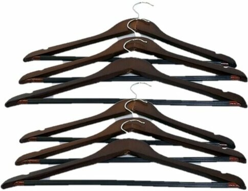 Le cintre pour vêtements d'extérieur et objets du quotidien se fixe solidement et les empêche de glisser. La barre transversale pour ranger les pantalons et les jupes a des fentes spéciales pour plus de commodité. L'ensemble comprend 6 pièces. Largeur : 44,5 cm Couleur : marron. Prix moyen : 1399 roubles.
