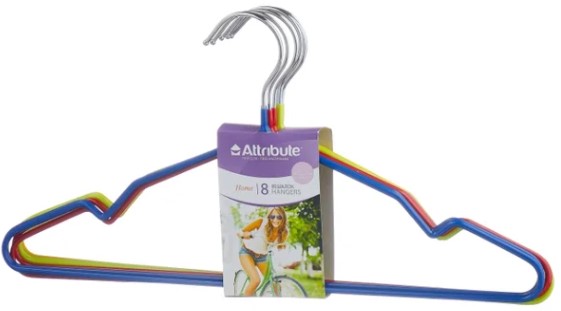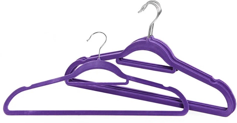 Le cadre en métal a un revêtement caoutchouté, ce qui permet de disposer le linge dans le placard de la manière la plus compacte possible, en protégeant le tissu de divers dommages et bourrages. Dimensions : 41 cm Contenu : 10 pièces, livrées dans un sachet plastique. Le crochet n'est pas rotatif. Coût : 299 roubles.