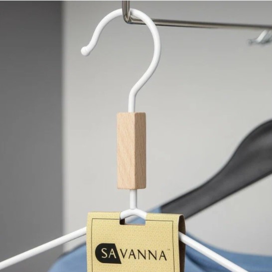 La base en bois et les cintres caoutchoutés fixent solidement les vêtements et empêchent les objets de glisser. L'apparence attrayante s'intégrera avec succès dans n'importe quel intérieur d'armoire. Ci-dessous, il y a des crochets spéciaux pour un rangement supplémentaire des vêtements sur les œillets (chemisiers, jupes, robes). Le crochet est pivotant, fournit l'emplacement le plus pratique. Largeur : 41 cm Prix : 555 roubles.