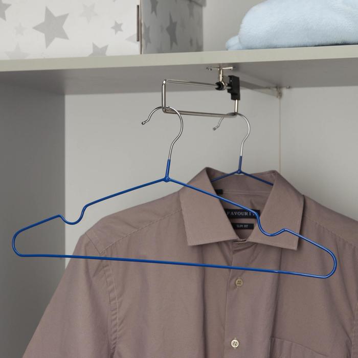 Un modèle classique en métal à haute résistance, avec un revêtement en polymère pour protéger les vêtements d'éventuels dommages. Grâce aux clips inférieurs, il vous permet de placer un pantalon ou une jupe supplémentaire sans prendre de place sur la barre transversale. Coût moyen : 244 roubles.