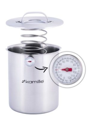 Idéal pour faire du jambon à la maison. Au centre du couvercle, il y a un trou pour un thermomètre avec une sonde (incluse). Le thermomètre permet de mesurer directement la température pendant la cuisson. Les bords du produit sont polis et sûrs. Possède un ressort qui permet de fermer un couvercle plus efficacement. Prix : 1990 roubles.