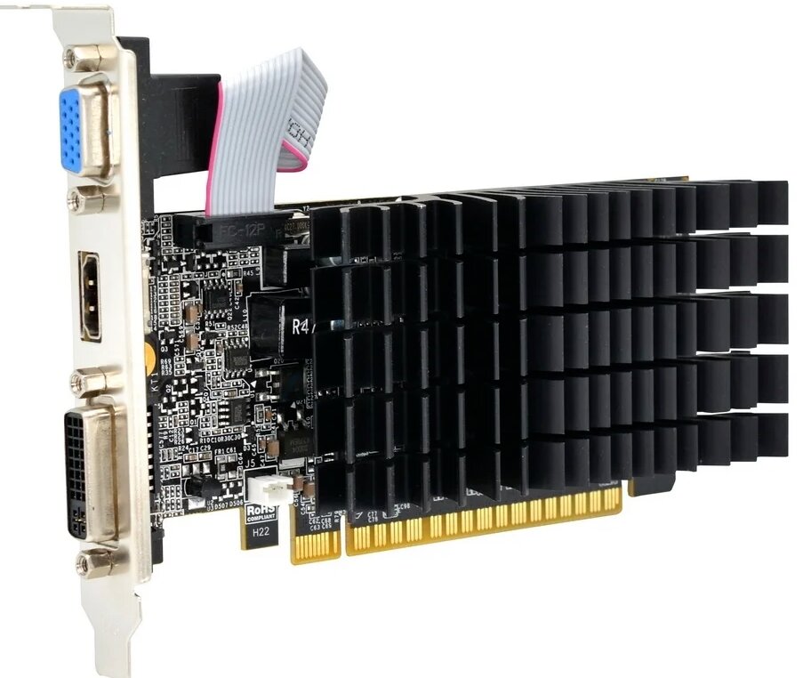 Refroidissement passif, pas de ventilateurs, TDP 19W. Vous pouvez connecter 2 écrans. Occupe deux emplacements.