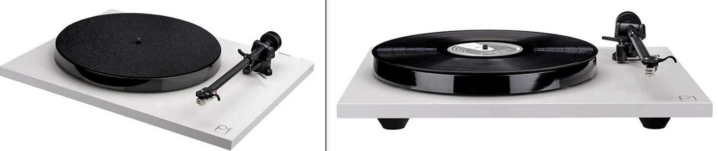 Platine vinyle en MDF avec disque en plastique et bras de lecture en aluminium "Rega RB110". Il y a une cartouche incluse. La commande est manuelle, simple, il y a l'anti-skating. Matériau de base en laqué noir ou blanc. Il y a un capot de protection, il n'y a aucune automatisation.
