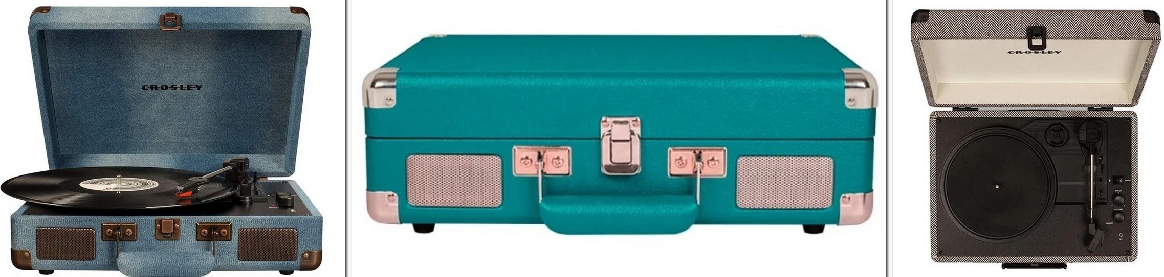 Crosley's Cruiser Deluxe CR8005D en différentes couleurs, aspect ouvert et fermé