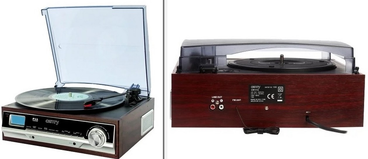 Tourne-disque vinyle à trois vitesses avec radio. Il a une housse de protection, des haut-parleurs intégrés, il y a un réveil, une chaîne stéréo et de l'auto-stop. Équipement audio avec un photocorrecteur, extérieurement similaire à une vieille radio. Il est équipé d'un écran à cristaux liquides, contrôlé électroniquement. Il y a une housse de protection sur le dessus. Couleur du boîtier - bordeaux, matériau - bois.
