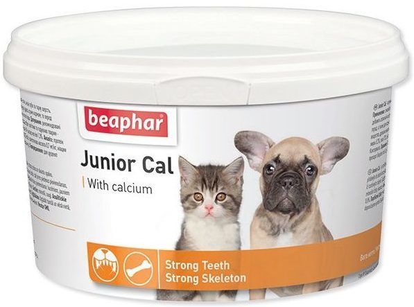 Le complément alimentaire Beaphar Junior Cal avec des minéraux aide à renforcer les dents, à améliorer le pelage et est bon pour les os.