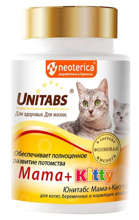 Le complexe de vitamines et de minéraux convient bien aux nouveau-nés, ainsi qu'aux chattes gestantes et allaitantes. Il contient des macronutriments (calcium, phosphore et magnésium), des vitamines des groupes A et B, ainsi que de l'acide folique, nécessaire à la croissance active de l'animal. Tous ces composants ont un effet positif sur la sécrétion de lait chez les femmes enceintes.
