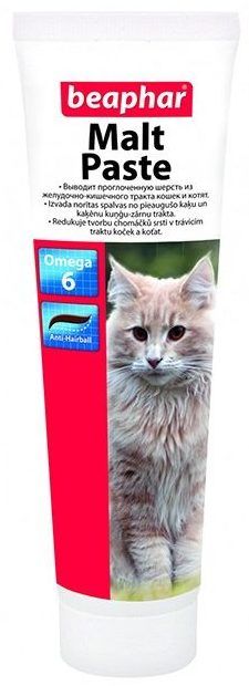 La pâte empêche l'accumulation de laine dans l'estomac. La composition contient du malt naturel, des huiles et des graisses qui aident à éliminer sans douleur les grumeaux dans les intestins, ainsi que du bêta-glucane, qui protège contre l'inflammation de l'estomac et des intestins de l'animal.