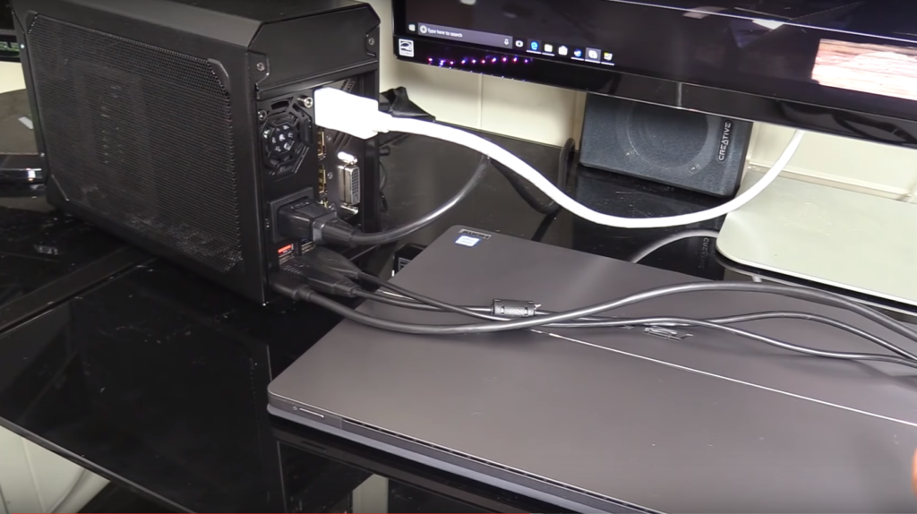 Le processus de connexion est extrêmement simple - vous devez installer une carte vidéo, un disque dur (si nécessaire) et connecter l'accélérateur Omen à un ordinateur portable à l'aide d'un câble spécial fourni avec le kit.