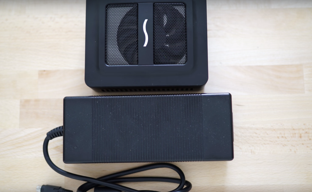 Le bloc d'alimentation a une puissance de 500 W, mais le "boîtier" est conçu pour des cartes dont la consommation électrique peut atteindre 375 W. Les interfaces sont également en ordre - les quatre standards USB 3.0 et USB 3.1 (alias Type-C / Thunderbolt, ce qui facilite la connexion à un ordinateur portable).