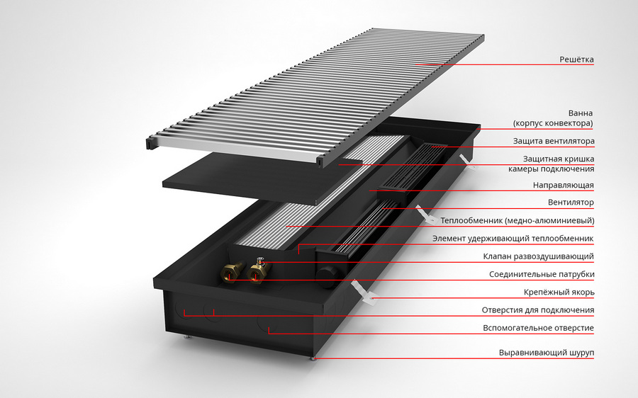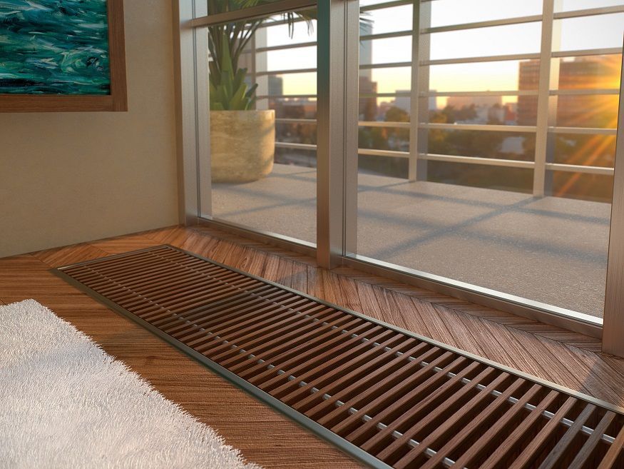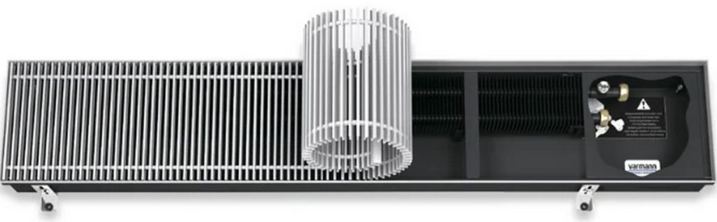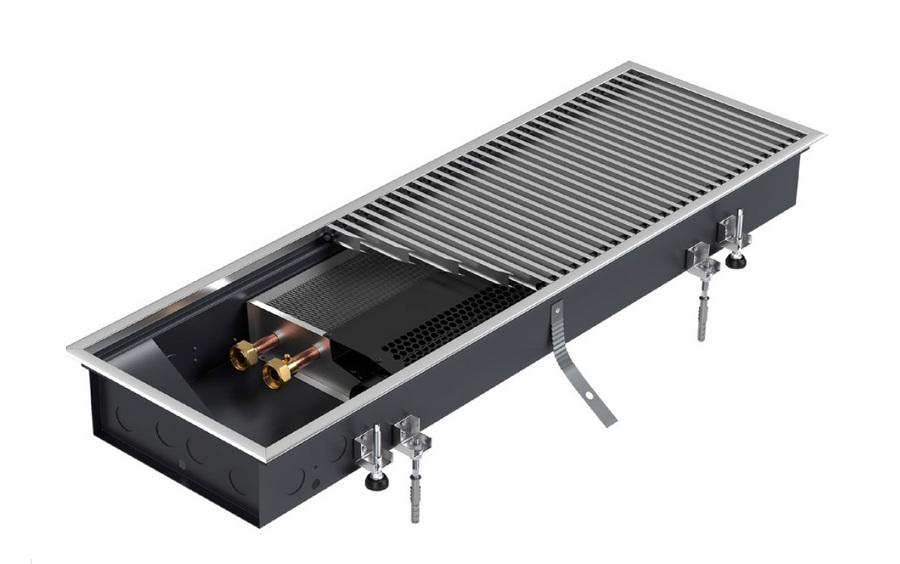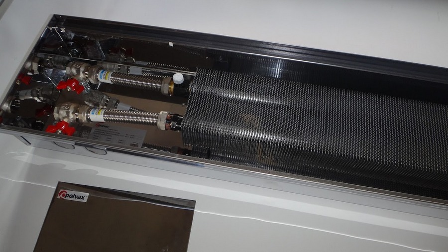 L'utilisation de batteries de radiateurs pour chauffer de grandes surfaces de halls ou de pièces avec de grandes fenêtres panoramiques n'est, pour le moins, pas l'option la plus esthétique. Plus acceptable dans ce cas serait l'option d'utiliser des convecteurs au sol (ce sont aussi des chauffages au sol). Aujourd'hui, ces appareils ne sont plus uniques et à une pression de fonctionnement de 15 bars (et à une pression d'essai de 25 bars), ils peuvent très bien être installés dans des immeubles d'habitation avec chauffage central, dans des bureaux et même dans des centres commerciaux.