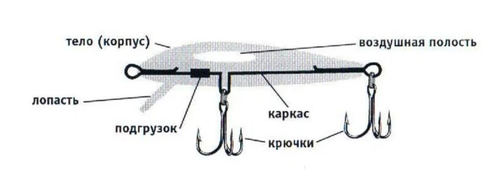 L'appât est en plastique, avec un hameçon simple fixé rigidement et un système de protection en fil. Le corps volumineux du boîtier est divisé en plusieurs chambres avec des billes qui remplissent les fonctions d'un hochet et d'un balancier. La charge a la forme d'une plaque de plomb fixée sur le dessus, ce qui offre un "jeu" attrayant pour le prédateur.