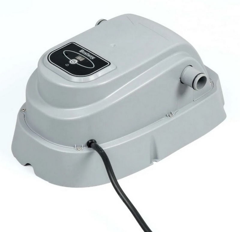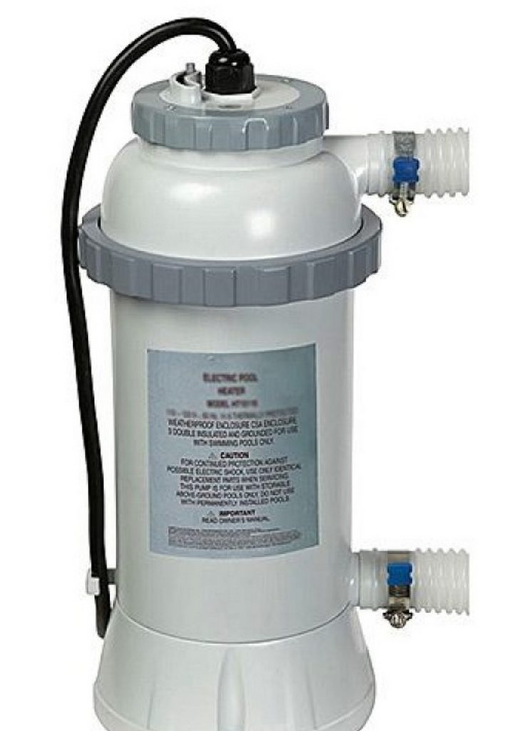 Un autre représentant pour le chauffage de l'eau dans les piscines mobiles gonflables à cadre de petite capacité. Il fonctionne grâce au moteur électrique, dont le travail vise exclusivement à pomper la masse d'eau, ce qui n'affecte pas le travail principal. Capable de réchauffer une petite quantité d'eau de 10 à 15 degrés en un temps relativement court. La tension requise du réseau électrique est de 220 volts. Le coût recommandé pour les chaînes de magasins est de 2400 roubles.