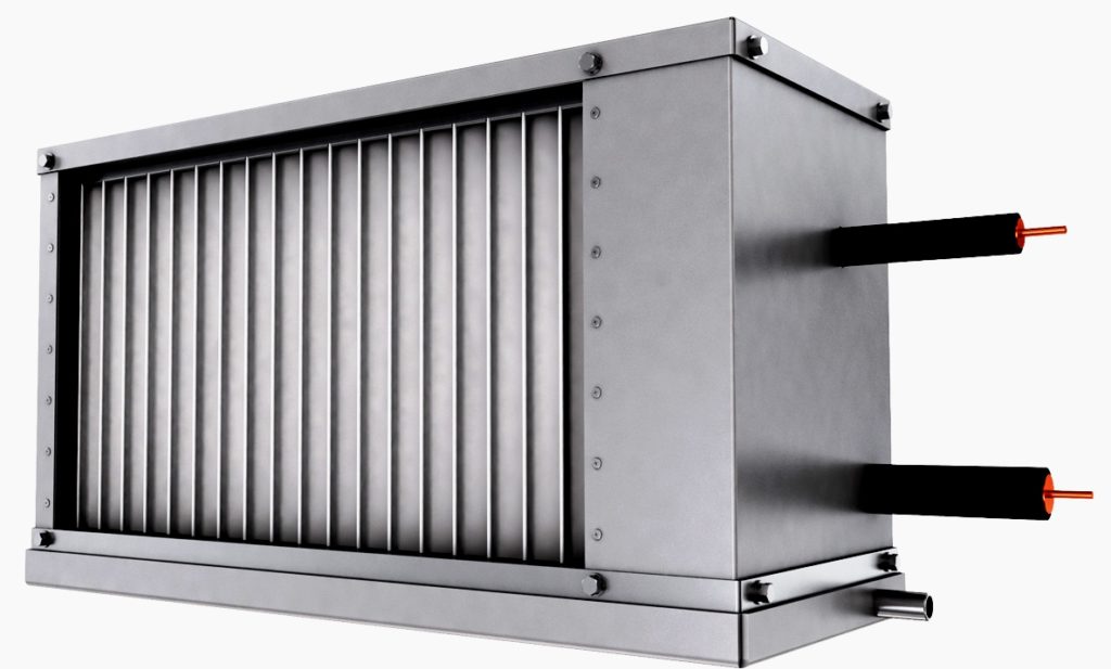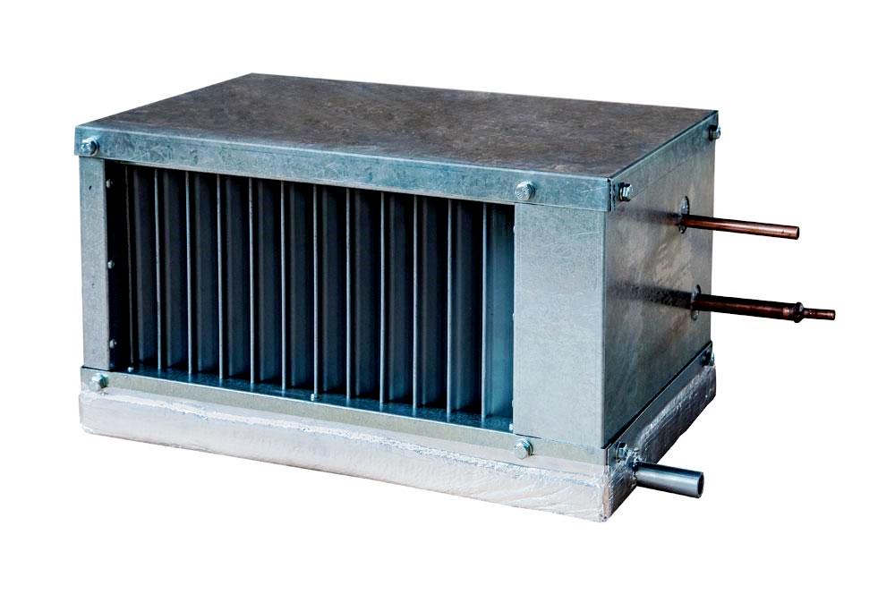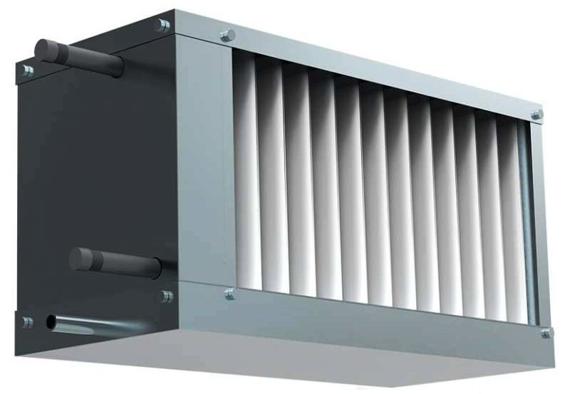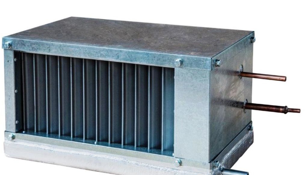 La conception est utilisée pour les canaux rectangulaires. La tâche principale est de refroidir l'air qui pénètre dans le système de ventilation du bâtiment. Cependant, un tel produit ne prévoit pas la présence d'impuretés agressives dans le système. Monté dans une ouverture de ventilation rectangulaire. Il est recommandé d'utiliser de l'antigel ou de l'eau dans le complexe.