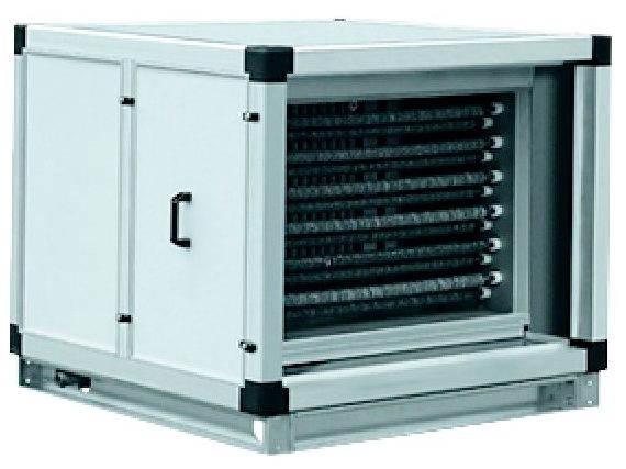 L'installation est réalisée dans des canaux rectangulaires dans des locaux industriels, publics et résidentiels qui doivent supprimer les masses d'air fournies. Le boîtier est en tôle d'acier galvanisée de haute qualité. L'échangeur de chaleur est constitué de tuyaux en cuivre. L'exécution à trois rangées est considérée comme standard. Le pas approuvé est de 2,1 mm. Ainsi, le constructeur a réussi à augmenter le taux de transfert de chaleur et à optimiser le poids et les dimensions avec une résistance aérodynamique insignifiante de l'échangeur de chaleur. Les tuyaux sont dilatés mécaniquement pour augmenter le transfert de chaleur. De plus, ils sont reliés aux ailettes.