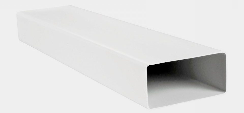 Canal plat, qui est utilisé pour les pièces à des fins diverses. Avec lui, vous pouvez facilement équiper la ventilation d'alimentation et d'extraction. Le montage au plafond est autorisé, à condition que le plafond doive être abaissé au minimum. Offert en blanc. Fabriqué à partir de PVC. La longueur autorisée des canaux est de 2 m, 1,5 m, 1 m et 0,5 m. Les canaux peuvent avoir la section suivante :