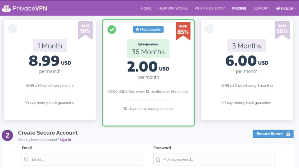Il existe trois plans tarifaires : pour un mois, un et deux ans.