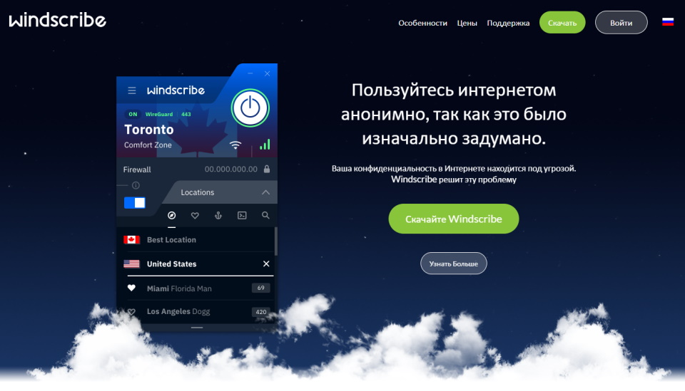 Un service multifonctionnel avec un trafic gratuit mensuel de 10 Go et utilisant des dizaines de serveurs à travers le monde pour accéder à Internet. Ces opportunités sont fournies par e-mail de confirmation. En cas de publication d'un message publicitaire sur Twitter, la limite de trafic est augmentée de 5 Go. Les informations personnelles ne sont pas requises lors du processus d'inscription, il suffit de spécifier un mot de passe et un identifiant. En cas de récupération du mot de passe, vous pouvez envoyer à l'administrateur du service une adresse e-mail, où les notifications concernant la fourniture de limites de trafic seront également reçues.