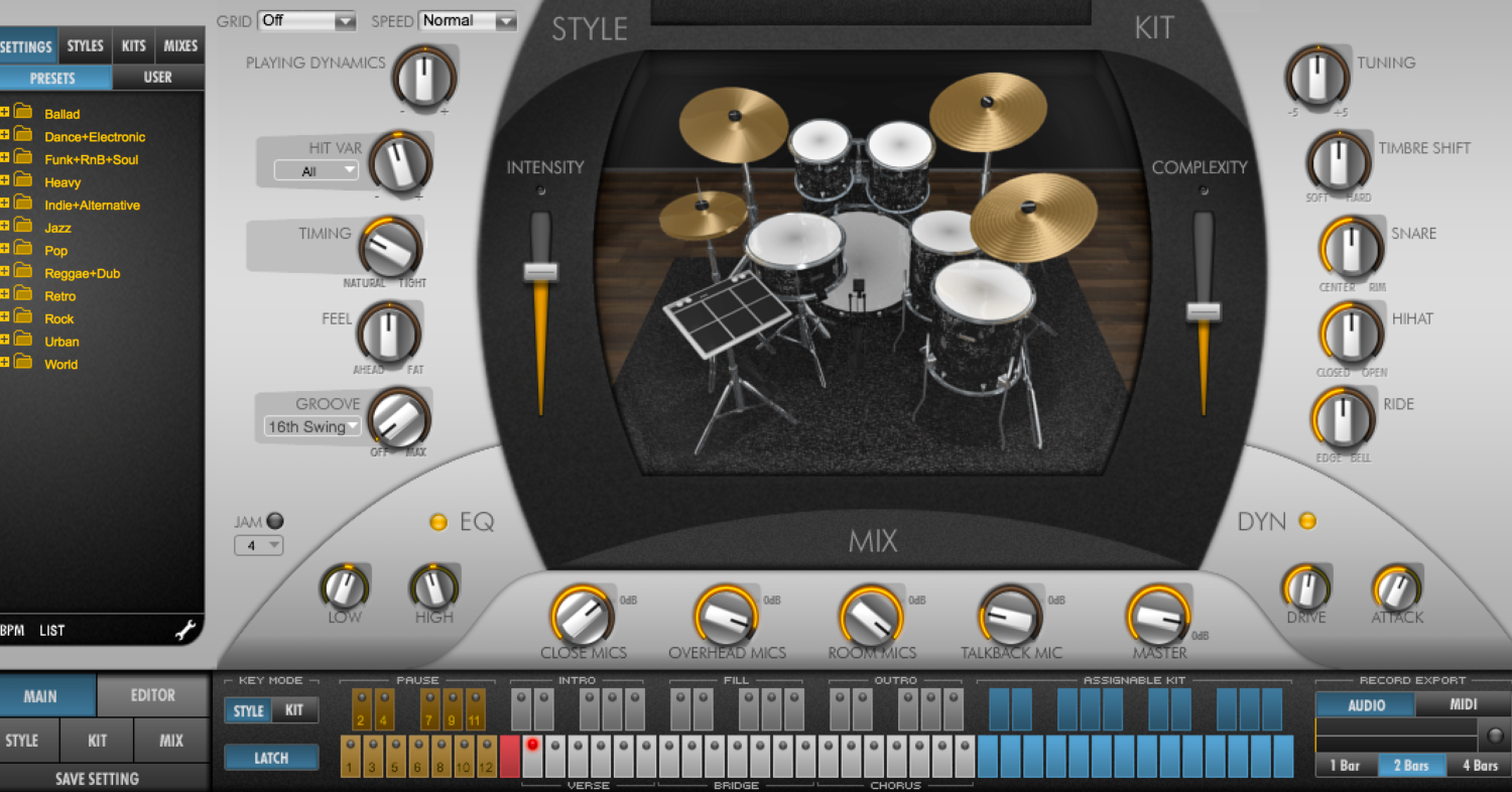 De plus, de nombreux paramètres, un contrôle facile, une belle interface intuitive. Le son est aussi réaliste que possible - la batterie a été enregistrée aux Grove Studios de Londres par le célèbre maître de l'industrie du disque, Chuck Enlein.