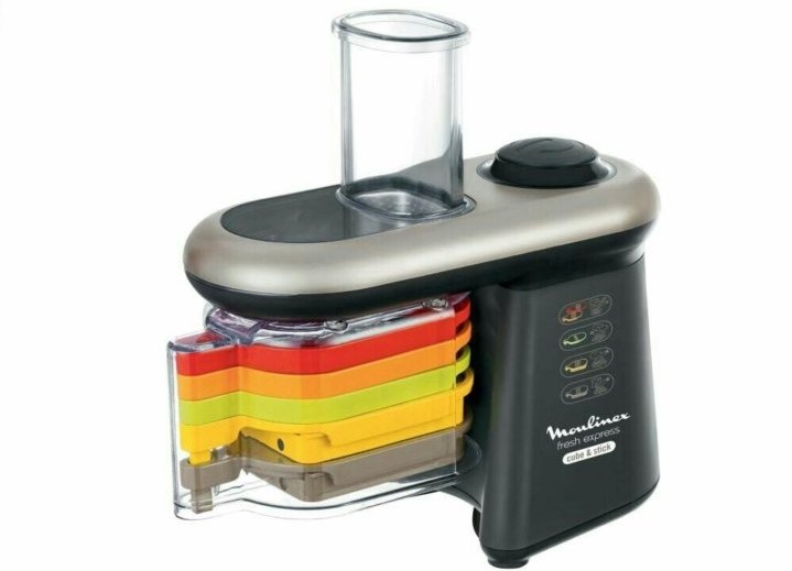 Multi-cutter multifonctionnel avec 5 buses (tranches, pailles, 2 râpes différentes). Les lames sont très tranchantes, mais en même temps suffisamment sûres, elles peuvent facilement faire face à une grande quantité de travaux divers. Puissance 280 watts. Dimensions : 26x36,8x39 cm Poids : 2,7 kg. La garantie constructeur est de 2 ans. Coût moyen : 14 589 roubles.