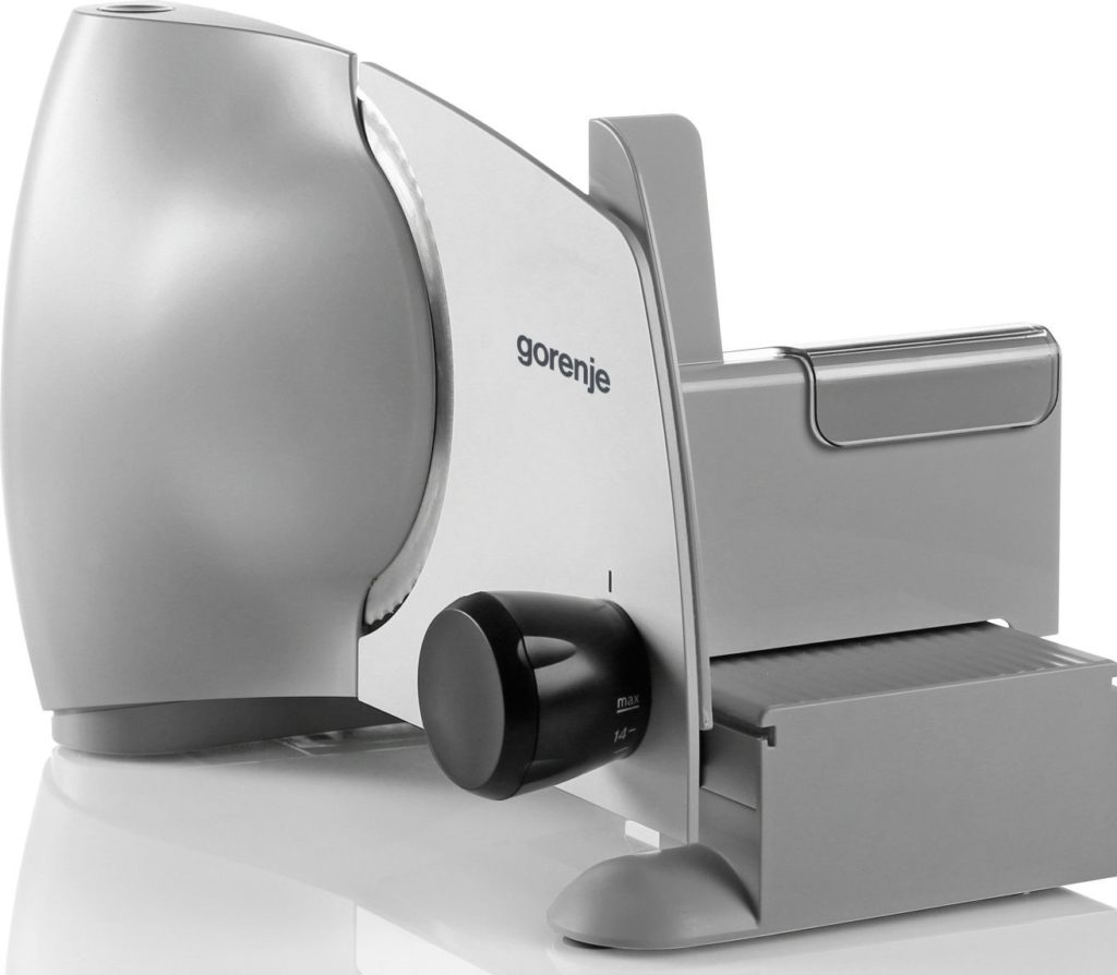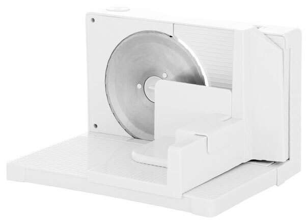 Trancheuse électrique à fonctionnement continu. Comprend 1 couteau utilitaire.L'épaisseur de coupe maximale est de 15 mm. Cela permet d'utiliser les tranches préparées pour le séchage dans des sèche-linge. Il y a un support pour les produits, ainsi qu'un plateau de coupe. Il est possible d'ajuster l'épaisseur de la coupe dans le processus. Puissance 100W. La durée de vie est de 7 ans. Coût : 3039 roubles.