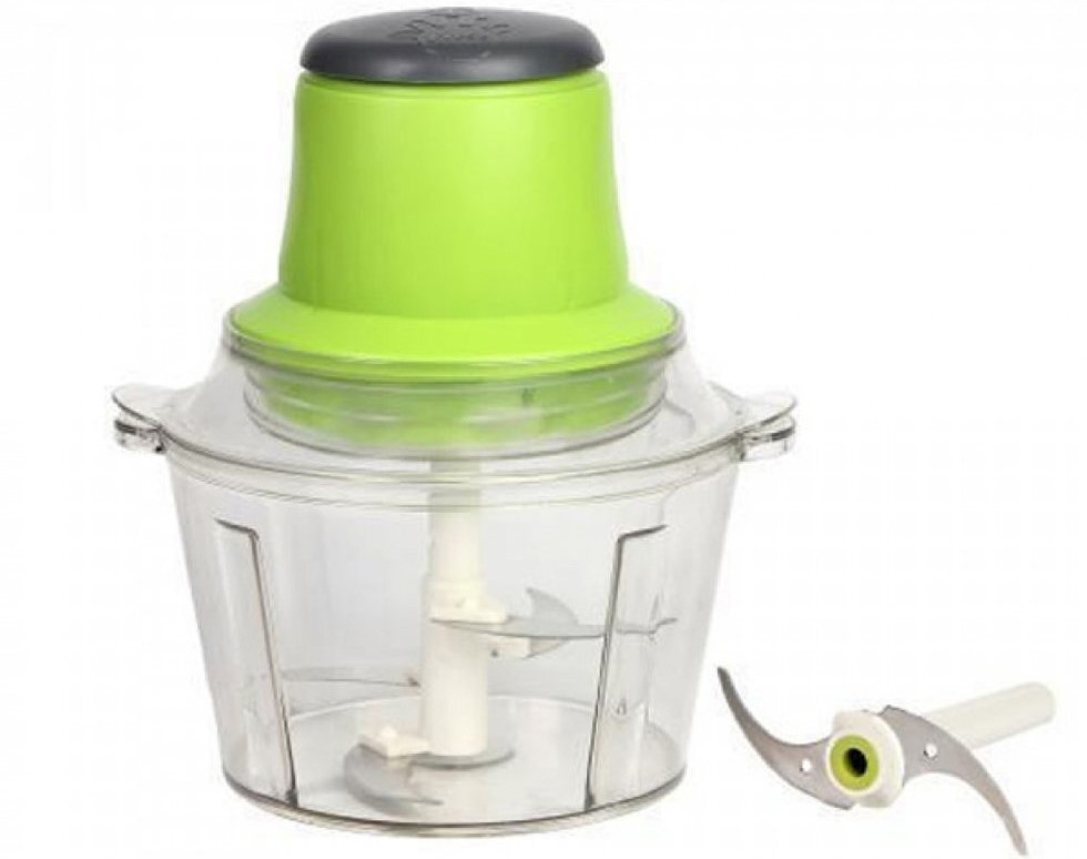 L'appareil universel remplacera plusieurs appareils dans la cuisine. Il peut être utilisé à la place d'un mélangeur, d'un shaker, d'un moulin à café et d'une trancheuse. Se coupe en cubes de différentes tailles. Volume du bol : 1,8 litre. Puissance - 300 watts. L'ensemble comprend 1 couteau utilitaire. Coût moyen : 1090 roubles.