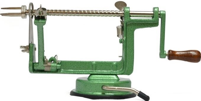 L'appareil productif avec découpe en spirale des produits. Le kit comprend 3 douilles qui permettent de réaliser des spirales de différentes longueurs : 3, 5, 9 mm. Toutes les pièces amovibles vont au lave-vaisselle.Les pommes de n'importe quelle taille peuvent être utilisées pour un séchage supplémentaire, faire des chips ou être consommées crues. De belles spirales de légumes et de fruits sont utilisées pour décorer des plats de fête. Coût moyen : 5594 roubles.